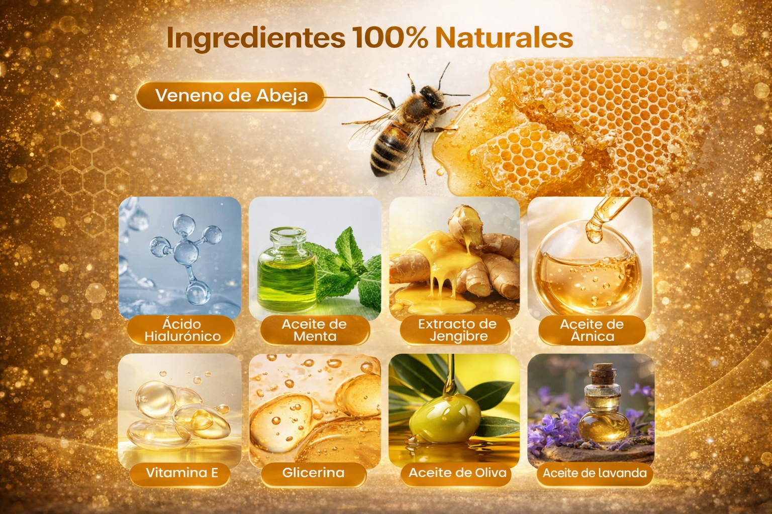 💡 Fórmula natural premium – Elaborada con EXTRACTO DE VENENO DE ABEJA, una alternativa eficaz para el cuidado diario del cuerpo.